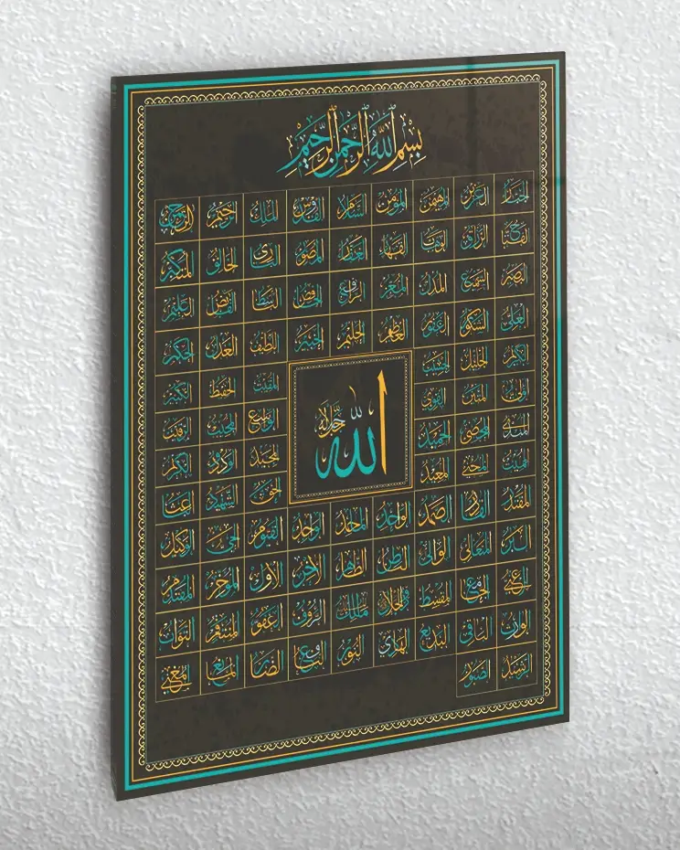 Allah’ın 99 İsmi Esmaül Hüsna Hat Sanatı Kırılmaz Temperli Cam Tablo