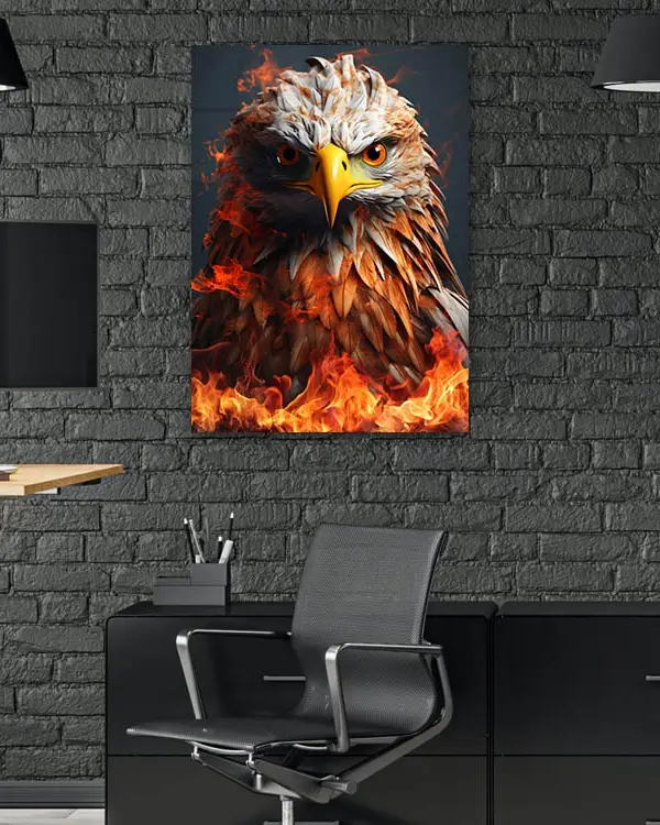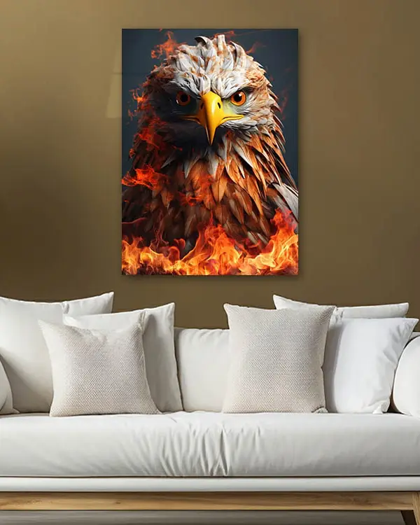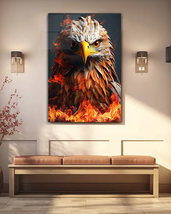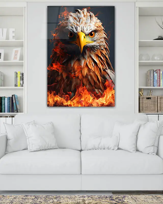 Alevler İçindeki Kartal Portresi Temperli Cam Tablo