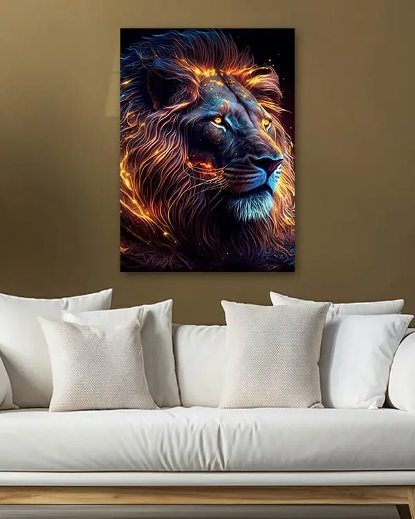 Yıldızlı Gökyüzünde Aslan Temperli Cam Tablo