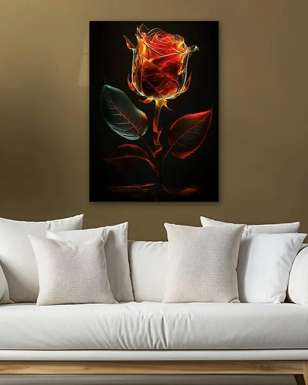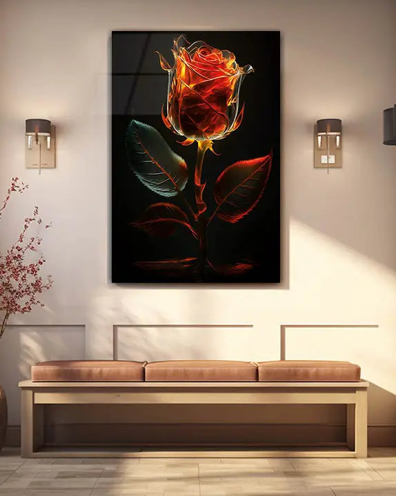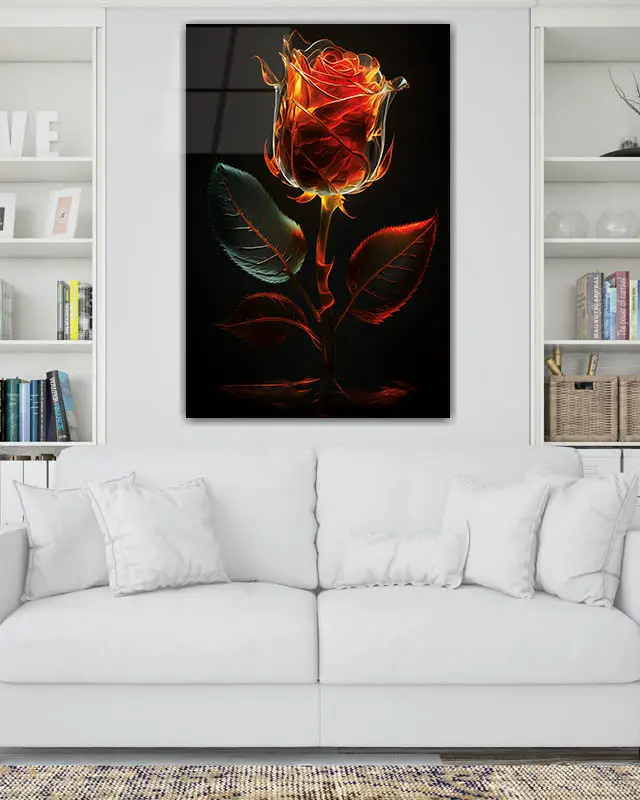 Alevsi Parlayan Gül Temperli Cam Tablo