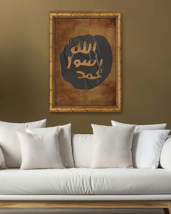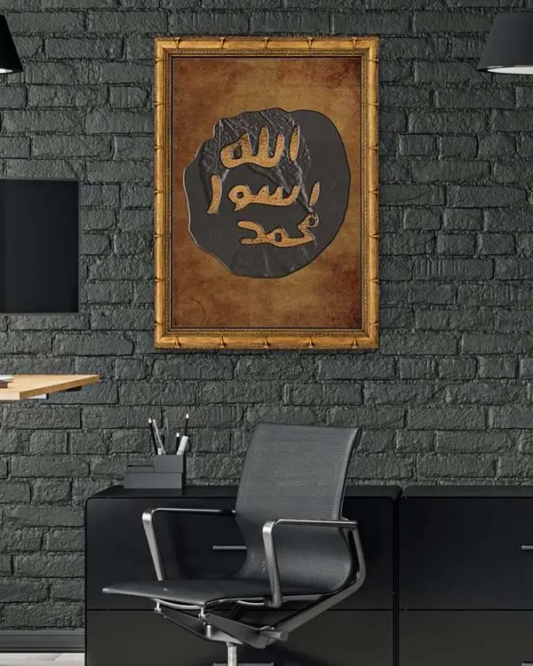 Allah İsmi Hacer-ül Esved Eskitme Kırılmaz Temperli Cam Tablo