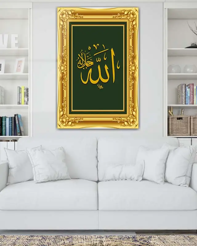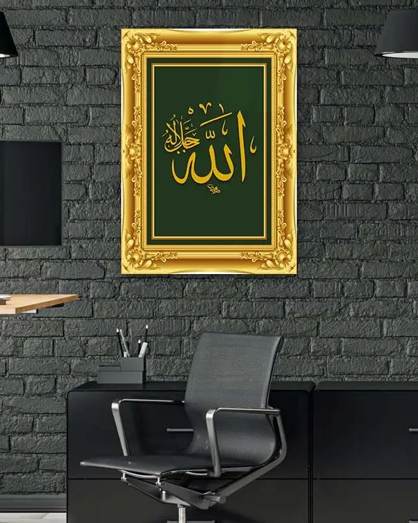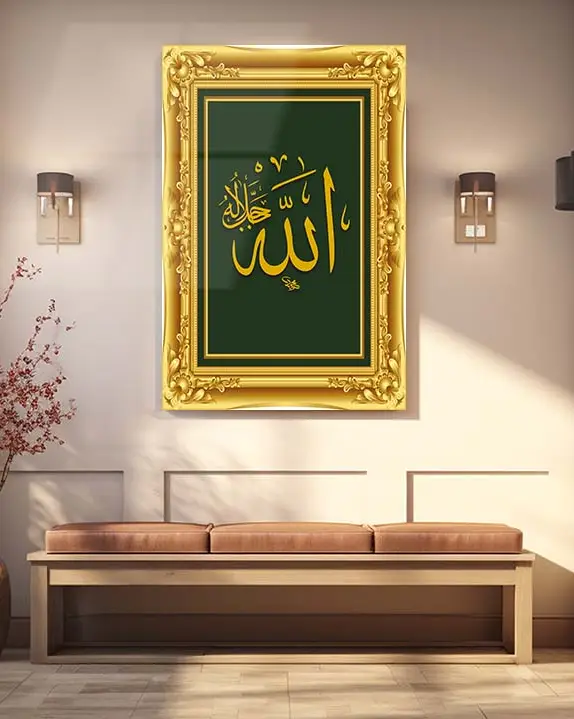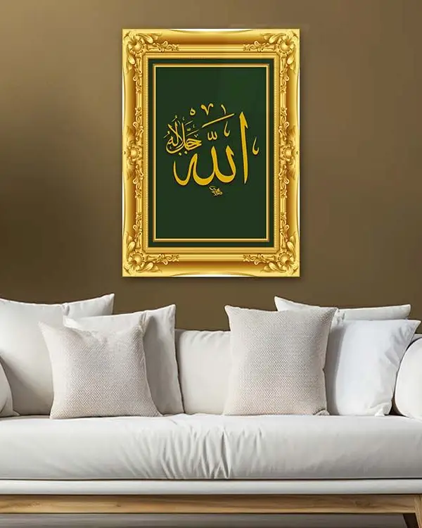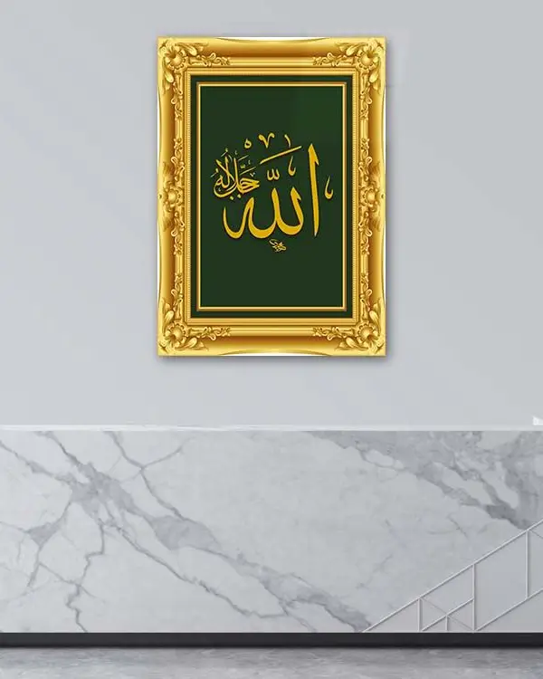 Altın Çerçeveli Allah Lafzı Kırılmaz Temperli Cam Tablo