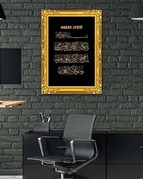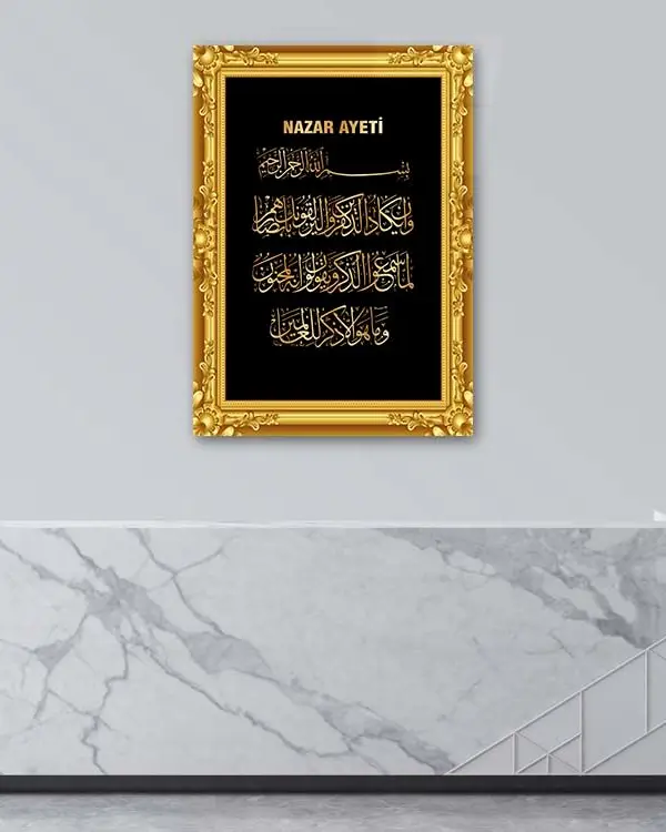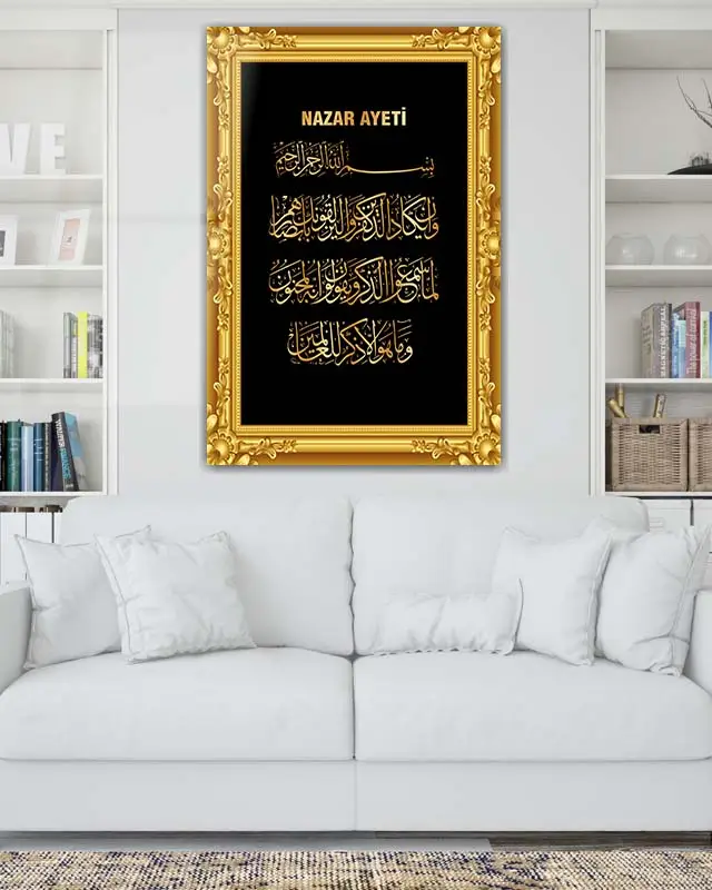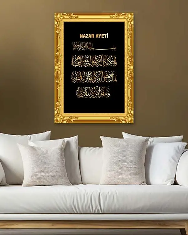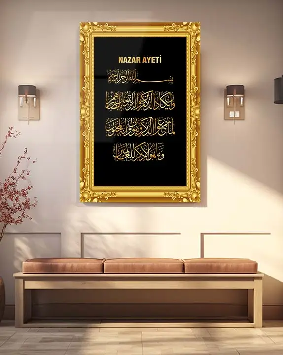Altın Çerçeveli Nazar Ayeti Kırılmaz Temperli Cam Tablo
