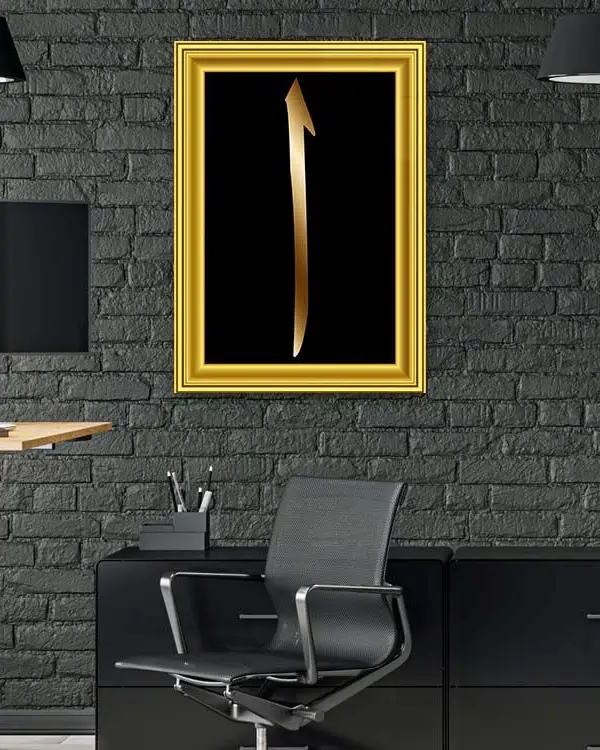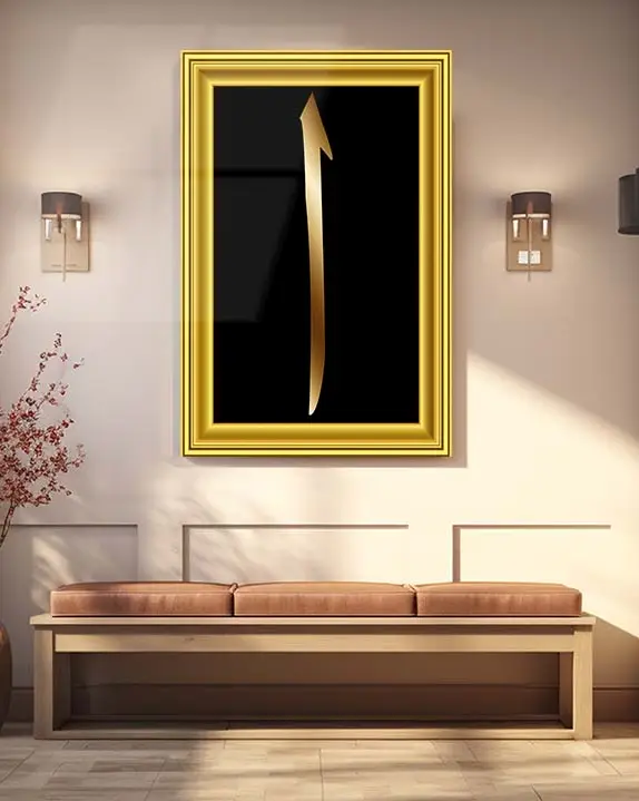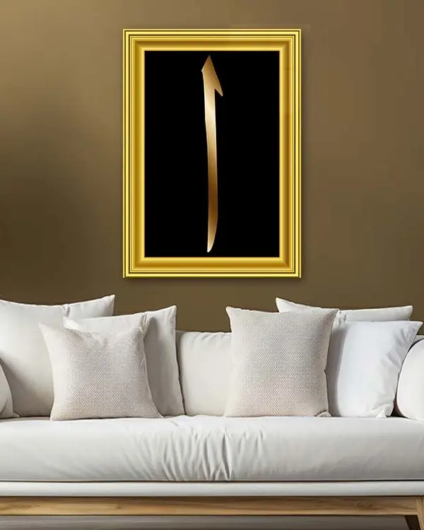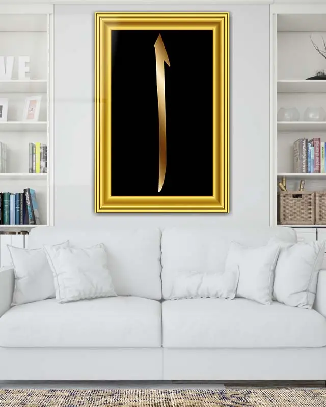 Altın Çerçeveli Siyah Zeminli Elif Harfi Kırılmaz Temperli Cam Tablo