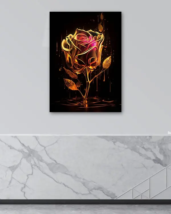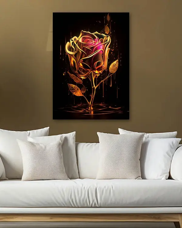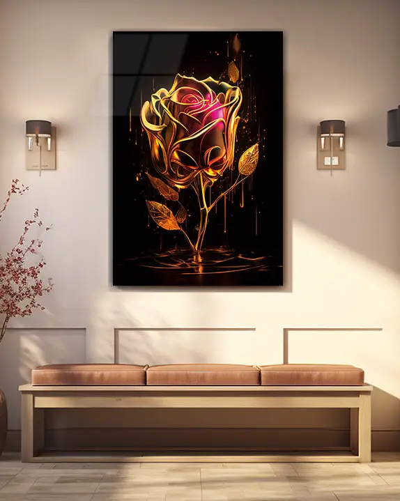 Altın Dokulu Gül Sanatı Temperli Cam Tablo
