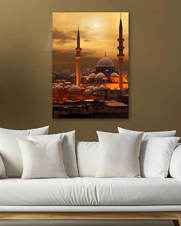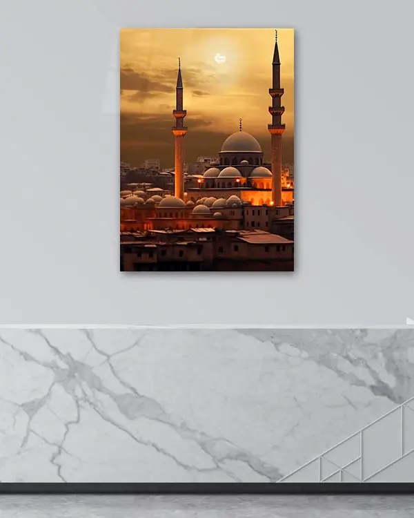 Altın Gün Batımı Camii Kırılmaz Temperli Cam Tablo