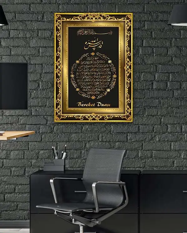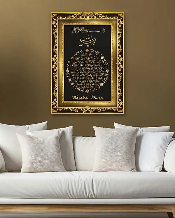 Altın Motifli Bereket Duası Kırılmaz Temperli Cam Tablo