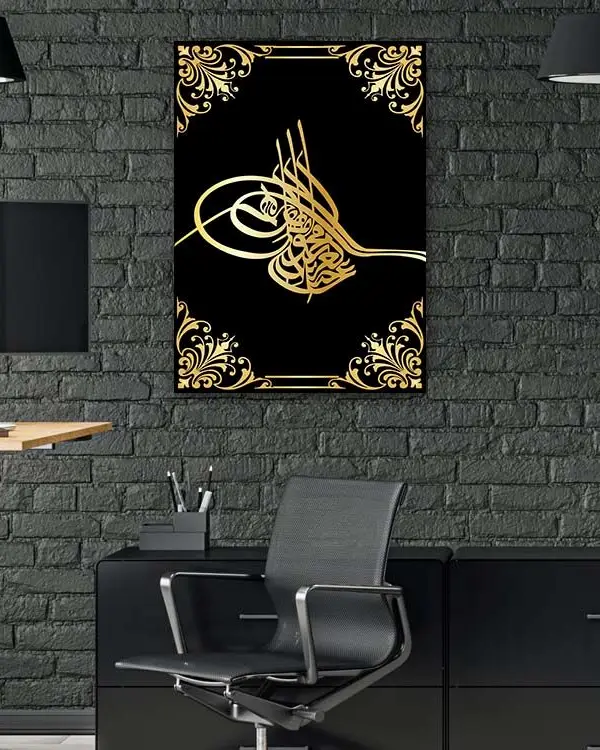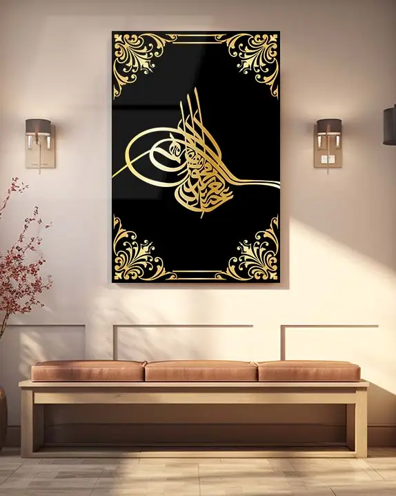Altın Renkli Osmanlı Tuğrası Tasarımlı Kırılmaz Temperli Cam Tablo