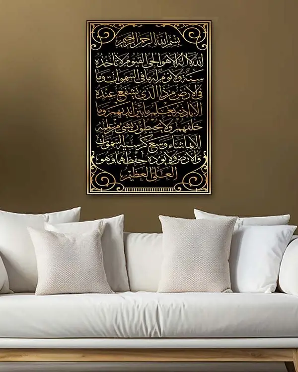 Ayetel Kürsi Yazılı Altın İşlemeli Dekoratif Kırılmaz Temperli Cam Tablo