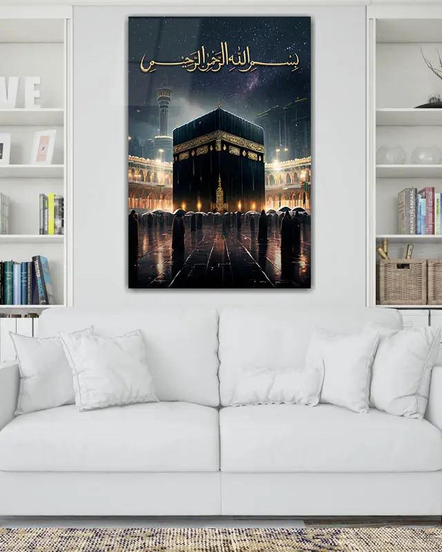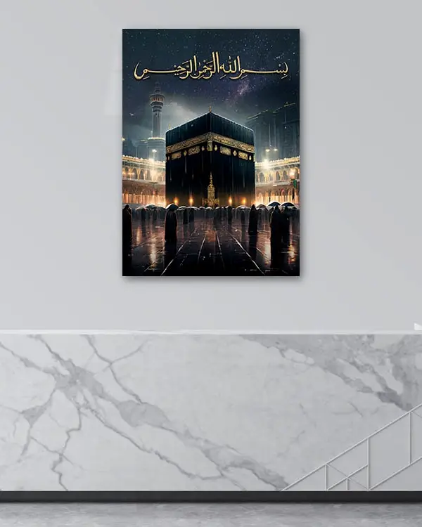 Bismillahirrahmanirrahim ve Kâbe Gece Kırılmaz Temperli Cam Tablo