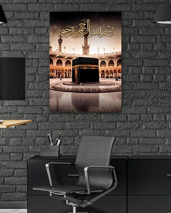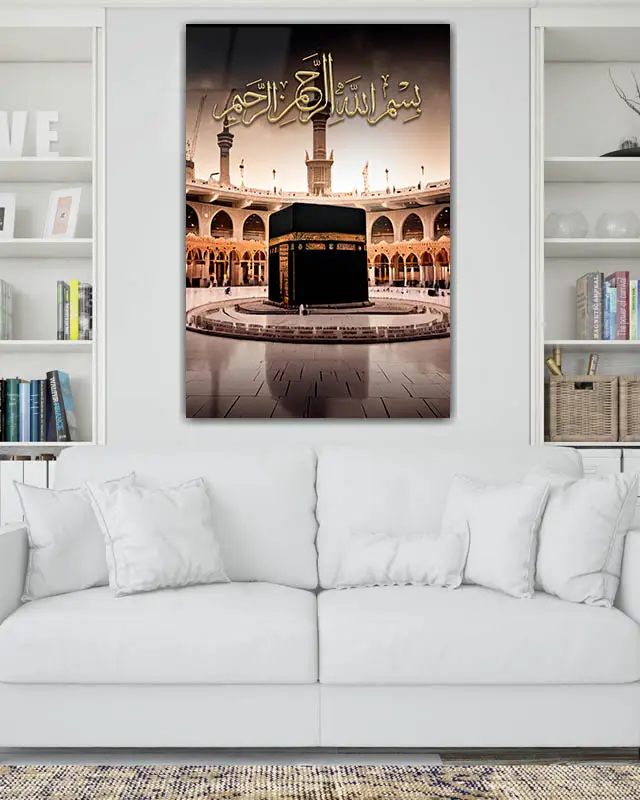 Bismillahirrahmanirrahim ve Kâbe Gece Kırılmaz Temperli Cam Tablo