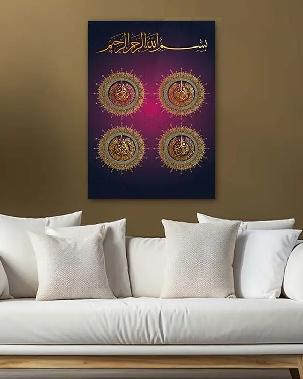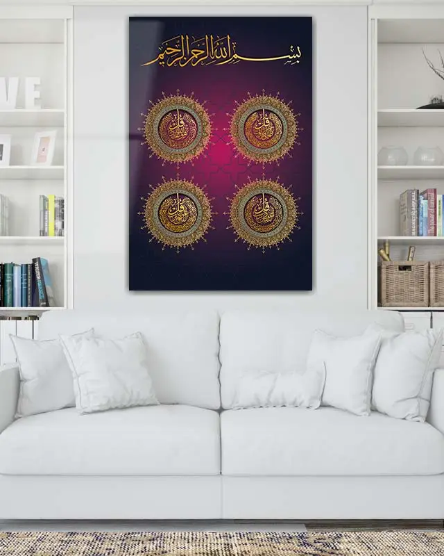 Altın Sarısı Zemin Üzerine Besmele ve Dört Halife Kırılmaz Temperli Cam Tablo