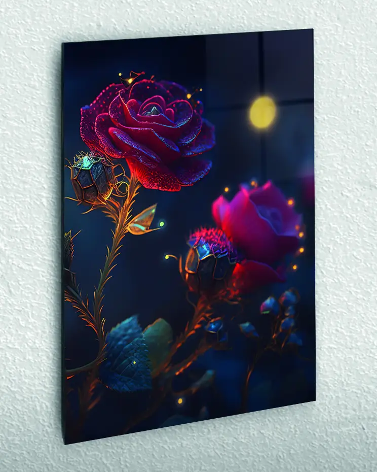 Gece Parıltılı Gül Bahçesi Temperli Cam Tablo
