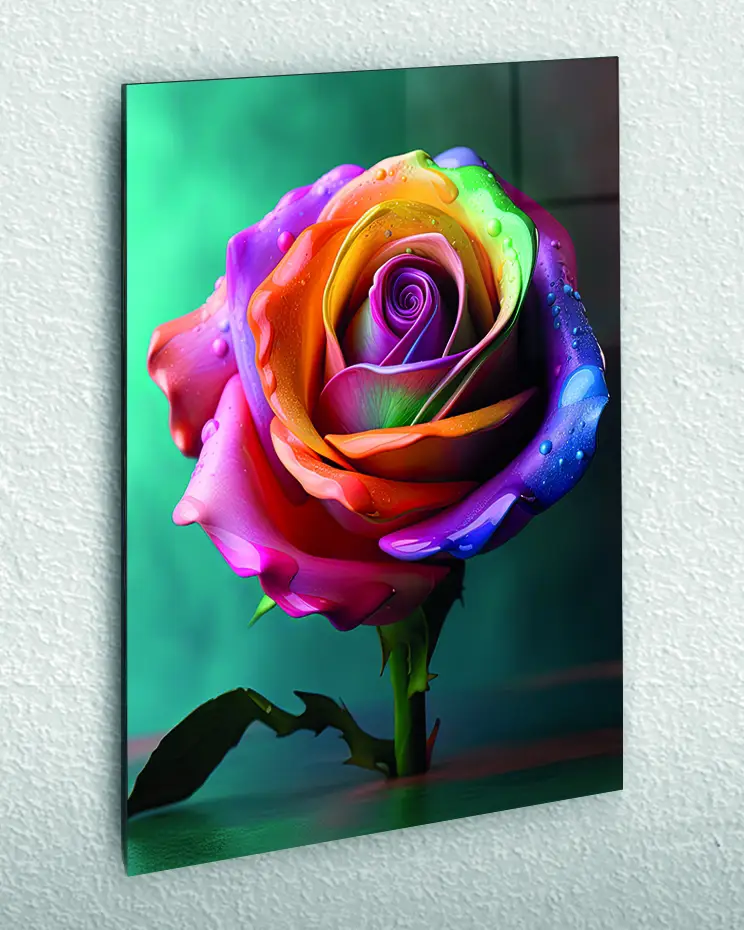 Gökkuşağı Renkli Gül Temperli Cam Tablo