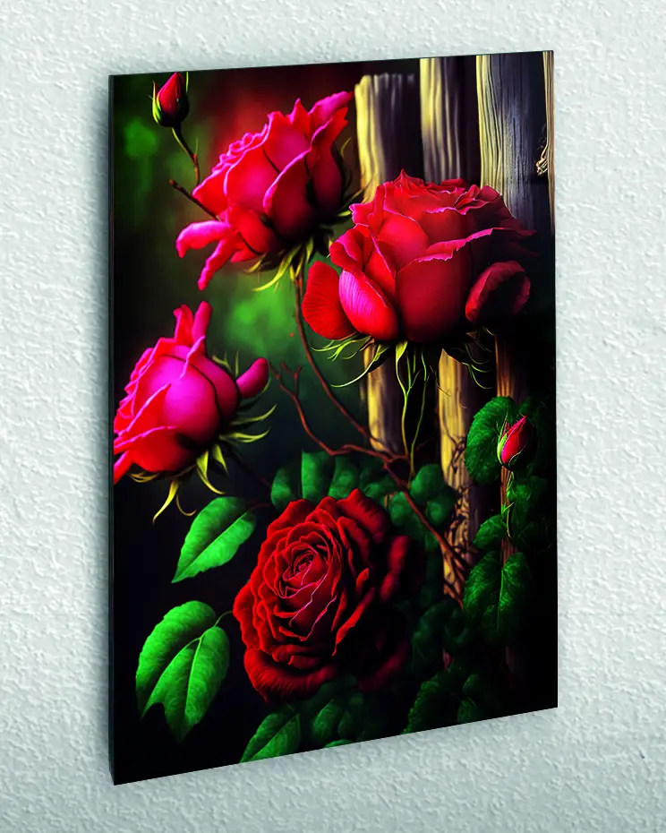 Bahçe Çitinde Kırmızı Güller Temperli Cam Tablo