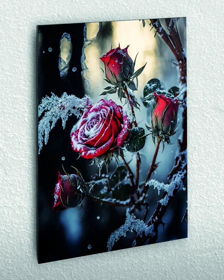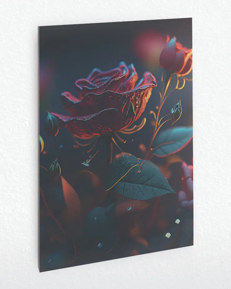 Büyülü Işıklı Gül ve Tomurcuklar Temperli Cam Tablo