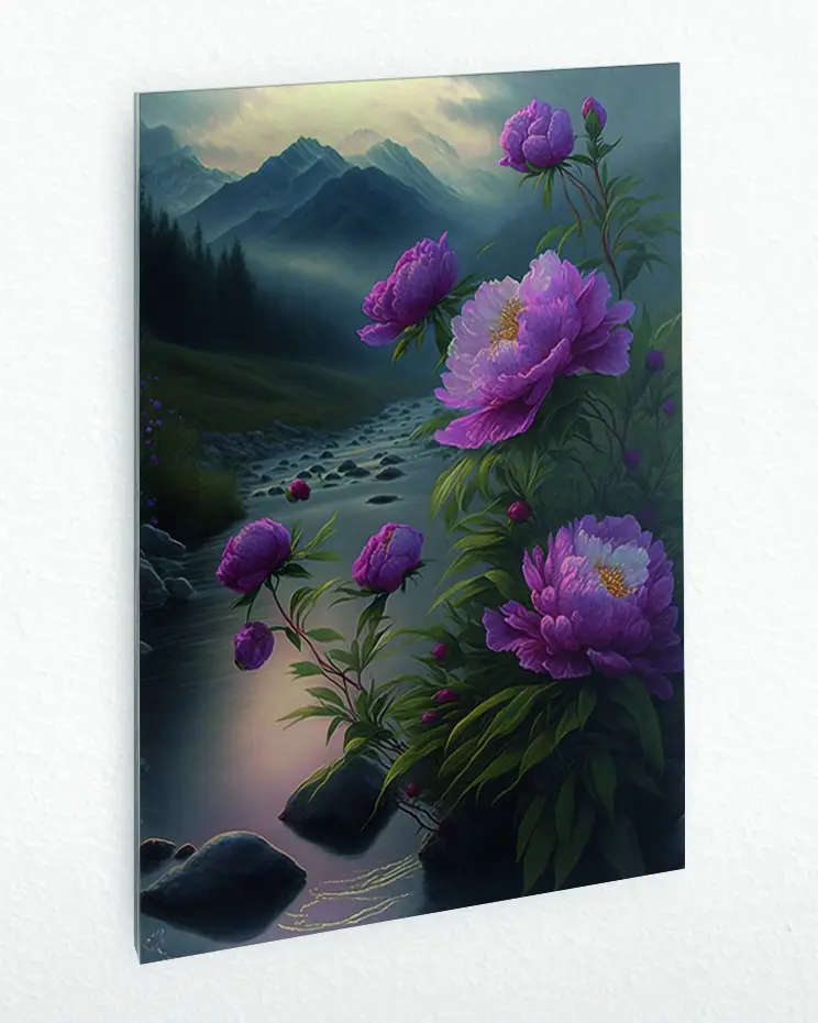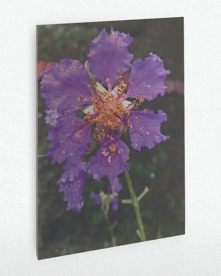 Doğal Ortamda Mor Çiçek Temperli Cam Tablo