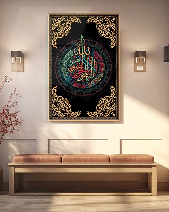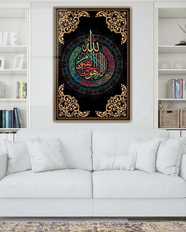 Çok Renkli Allah Yazılı Kırılmaz Temperli Cam Tablo
