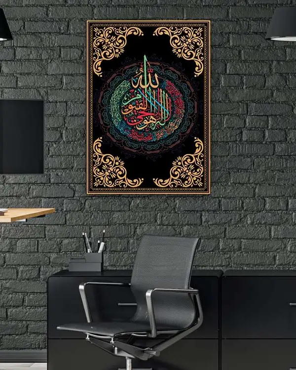 Altın Renkli Ayetel Kürsi Yazısı Kırılmaz Temperli Cam Tablo