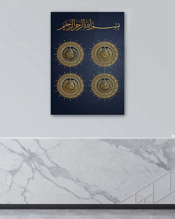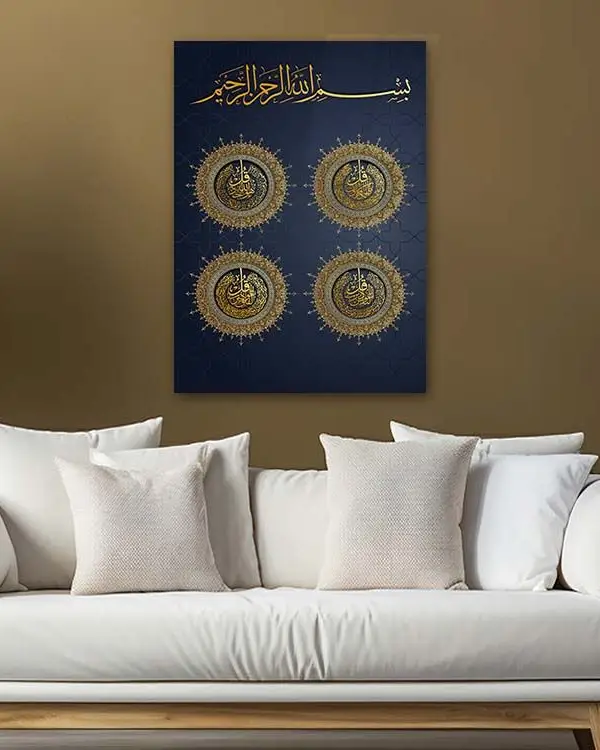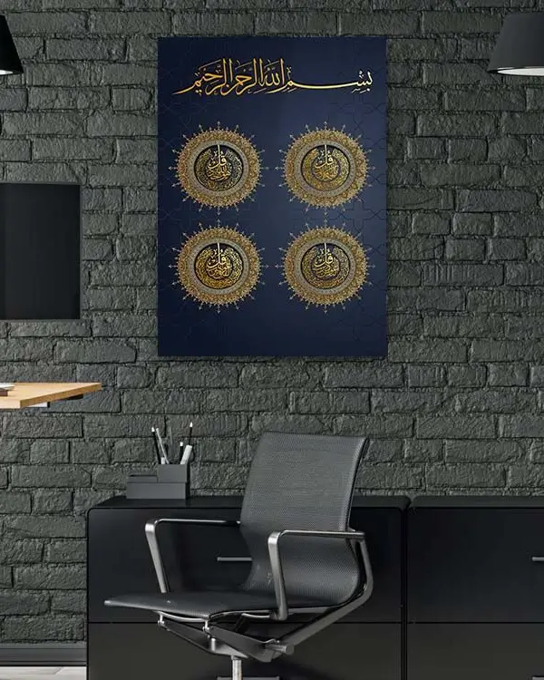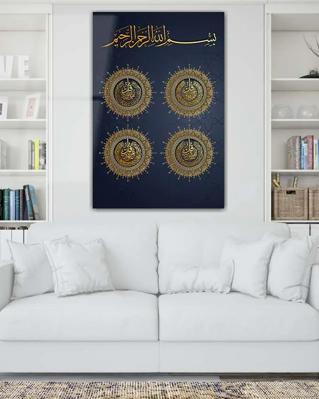 Dört Halife Lafızları Hat Sanatı Kırılmaz Temperli Cam Tablo