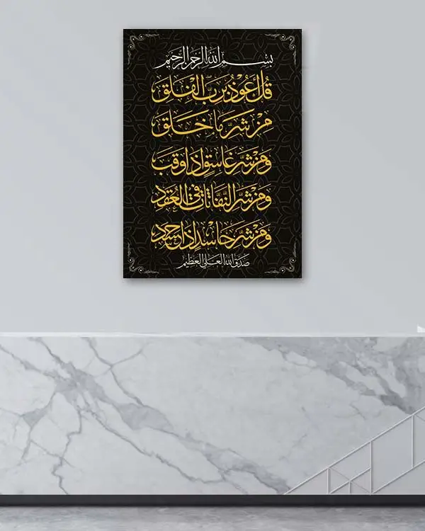 Felak Suresi Hat Sanatı Kırılmaz Temperli Cam Tablo