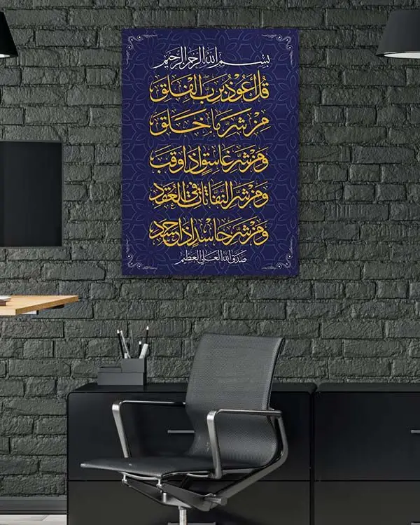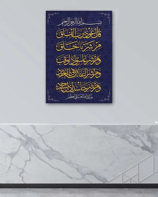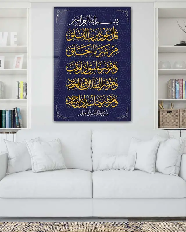 Felak Suresi Mavi Zemin Kırılmaz Temperli Cam Tablo
