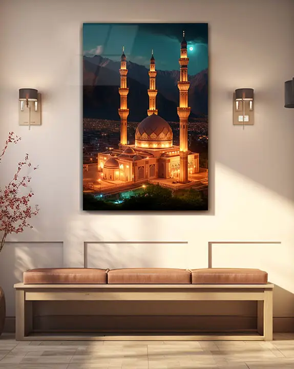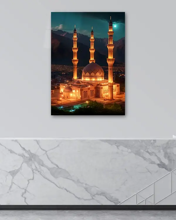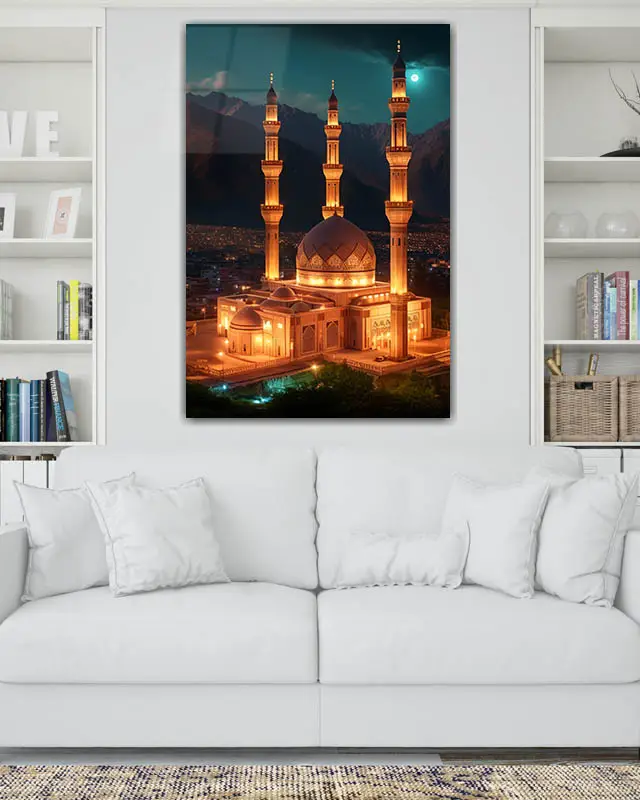 Gece Aydınlatmalı Cami Kırılmaz Temperli Cam Tablo
