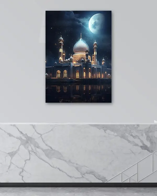 Gece Işığında Camii Kırılmaz Temperli Cam Tablo
