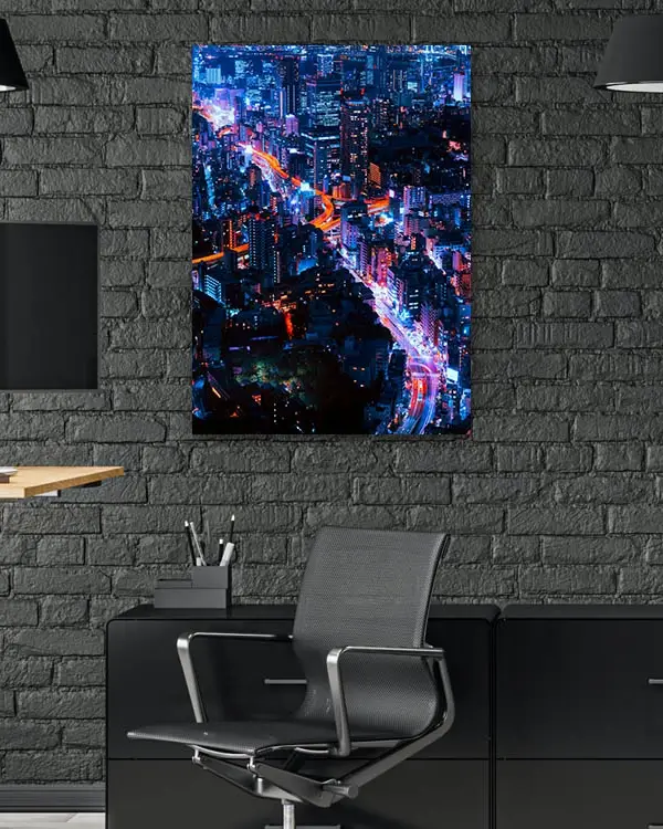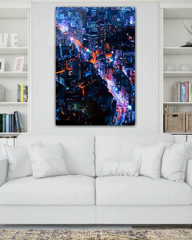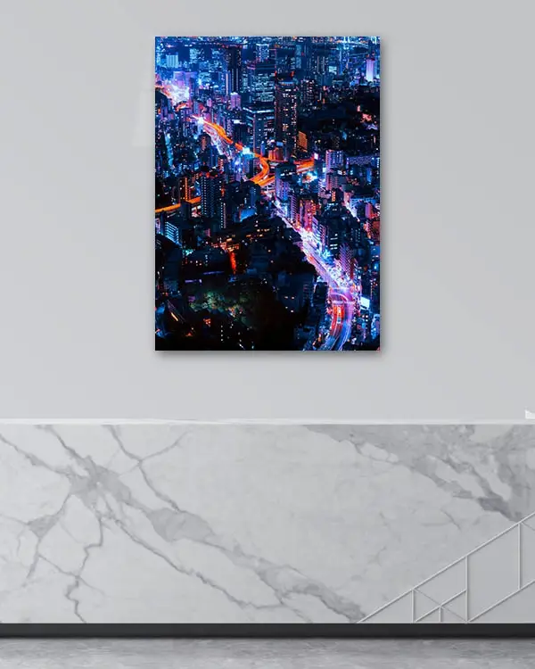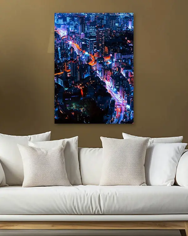 Gece Işıklarıyla Şehir Manzarası Temperli Cam Tablo