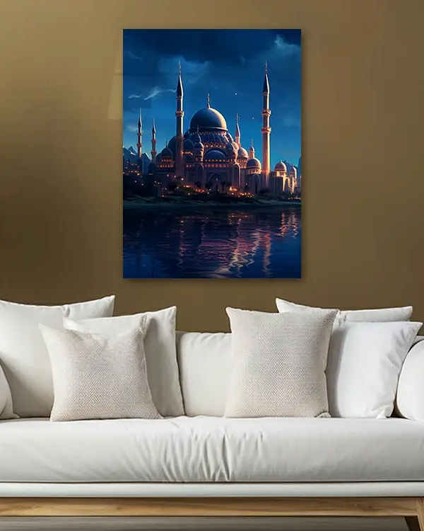Gece Manzaralı Camii Kırılmaz Temperli Cam Tablo