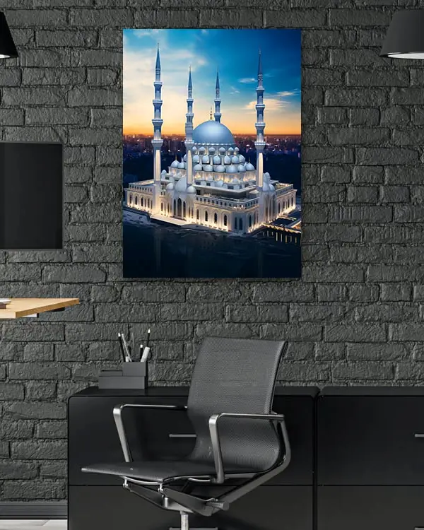 Gün Batımı Manzaralı Cami Görseli Kırılmaz Temperli Cam Tablo