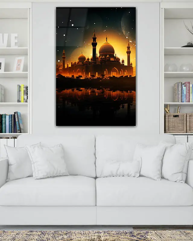 Gün Batımında Camii Kırılmaz Temperli Cam Tablo