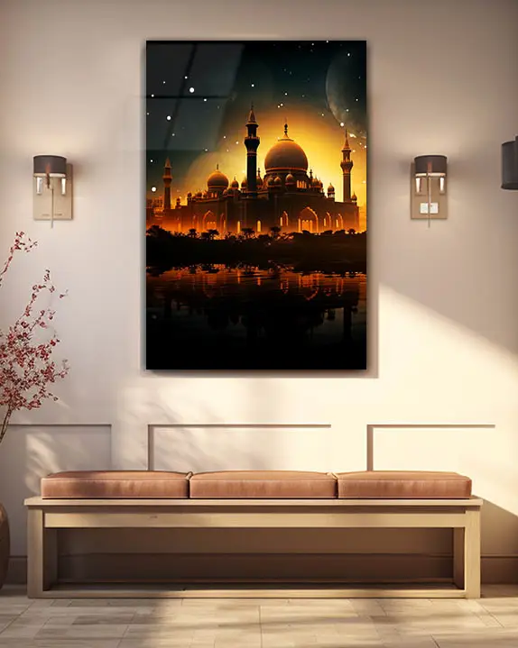 Gece Manzaralı Camii Kırılmaz Temperli Cam Tablo