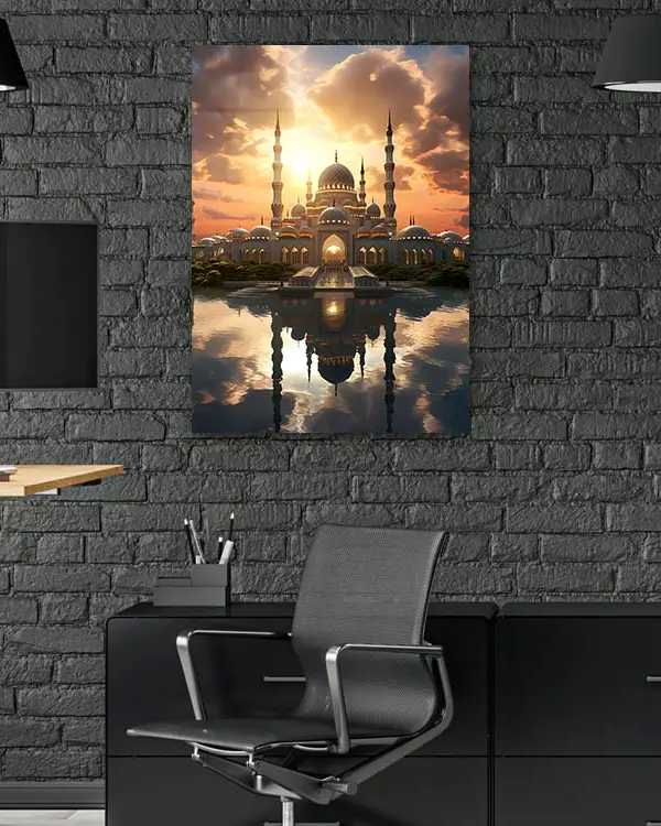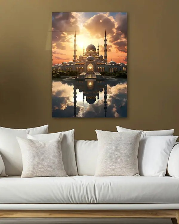 Gün Batımında Camii Manzarası Kırılmaz Temperli Cam Tablo