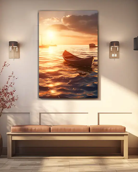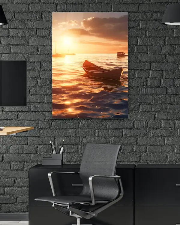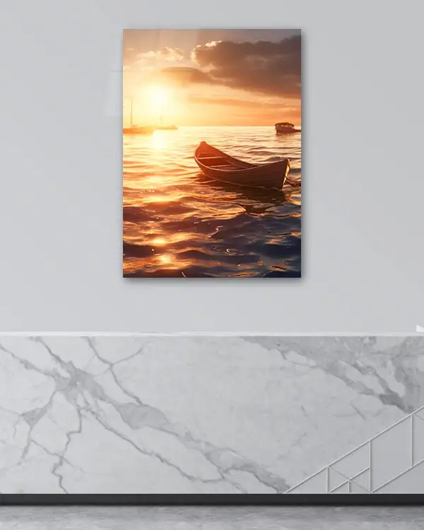 Gün Batımında Tekne Manzarası Temperli Cam Tablo