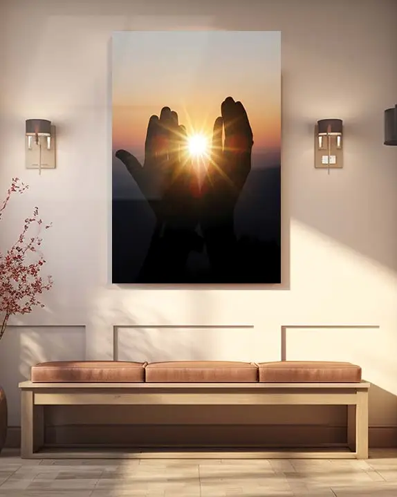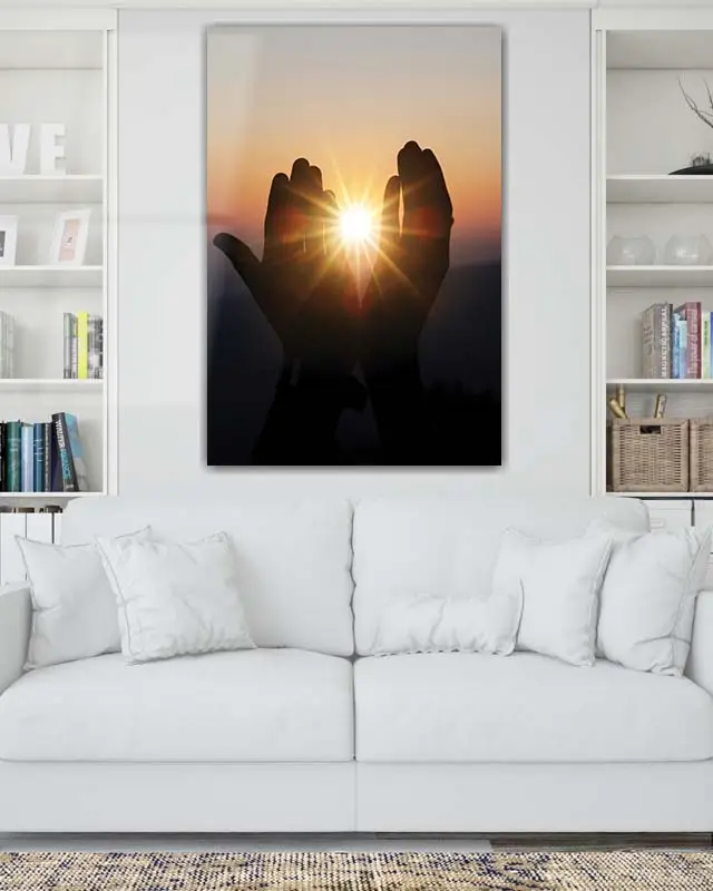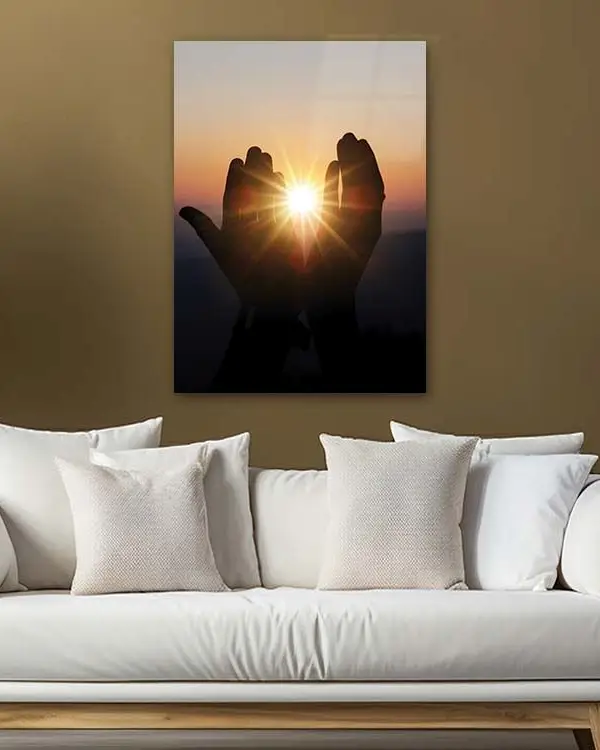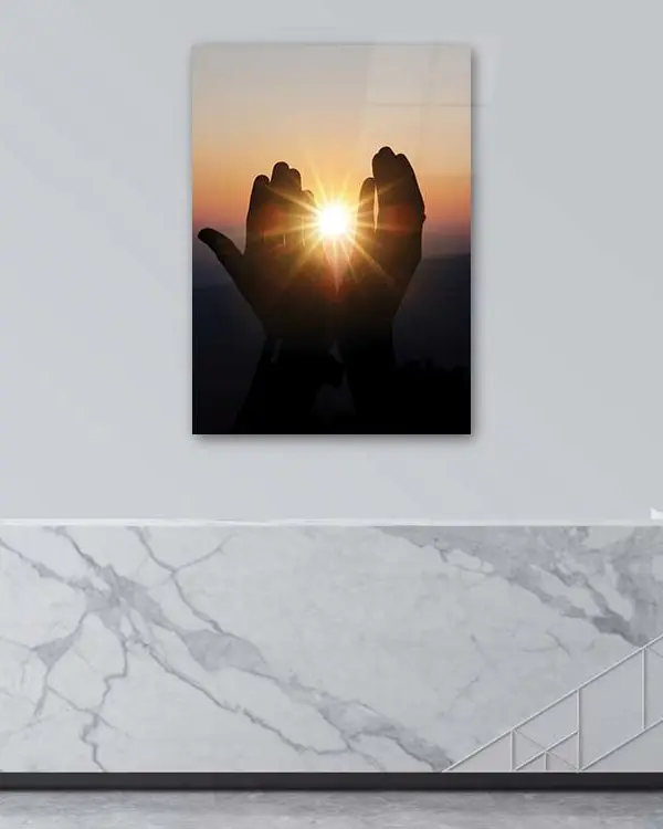 Güneşe Açılan Dua Eden Eller Kırılmaz Temperli Cam Tablo