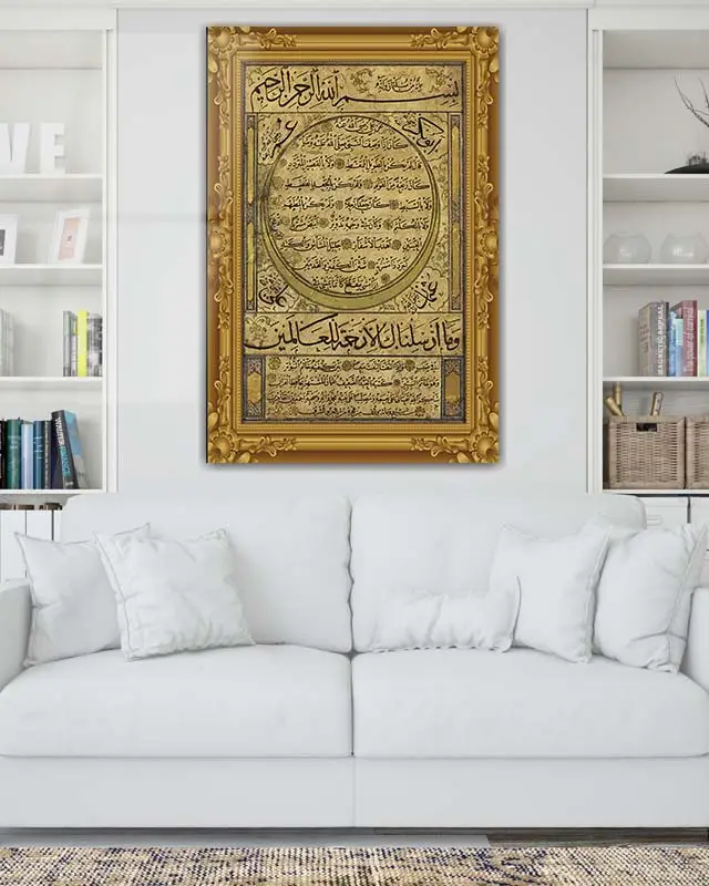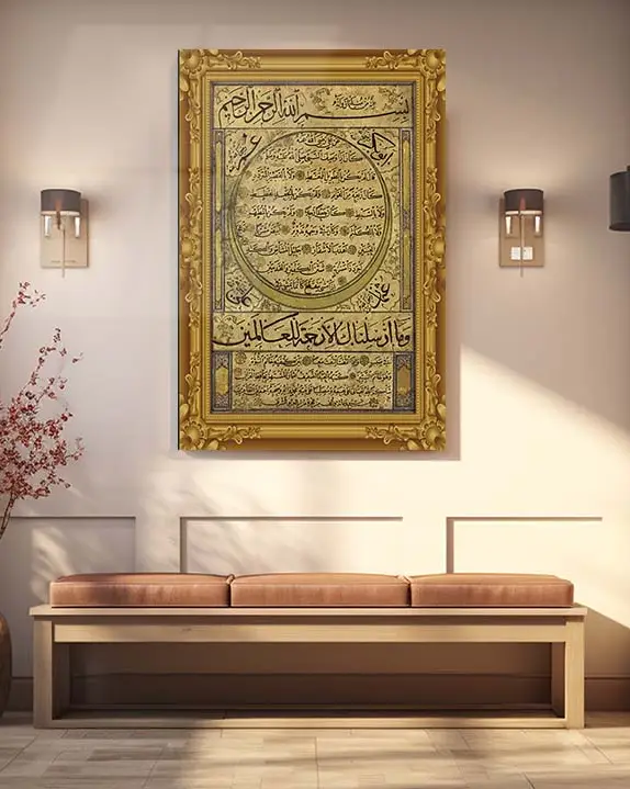 Hilye-i Şerife Altın Çerçeveli Kırılmaz Temperli Cam Tablo