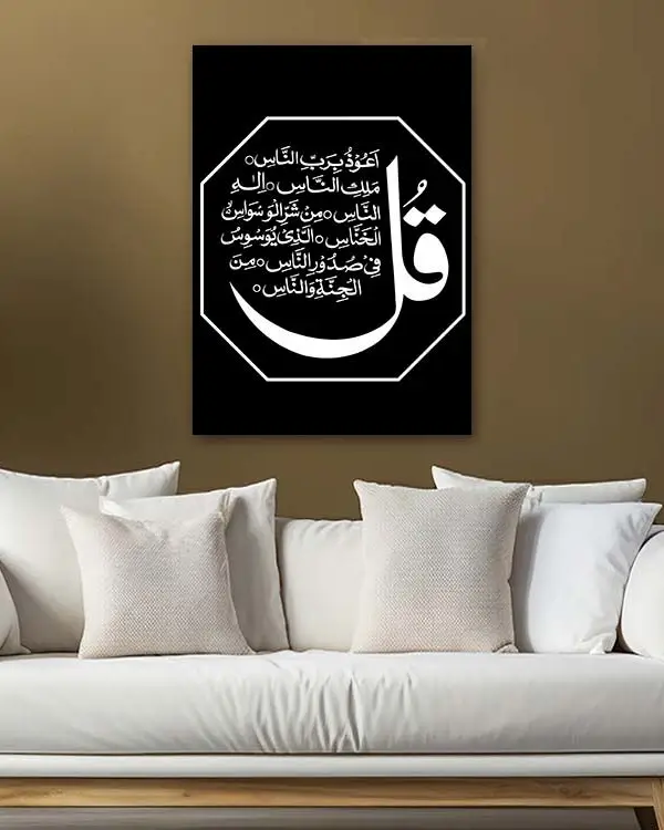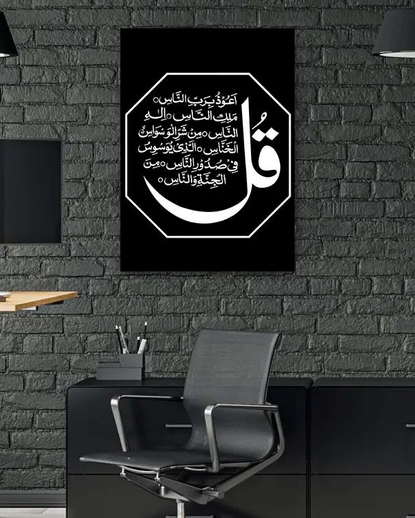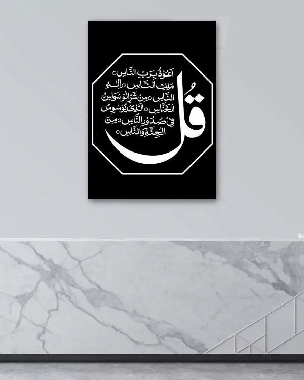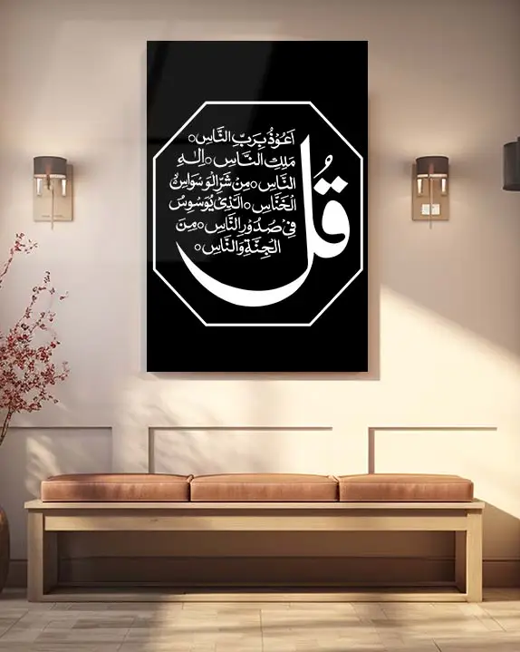 Kafirun Suresi Yazılı Siyah Zemin Ay Motifli Kırılmaz Temperli Cam Tablo