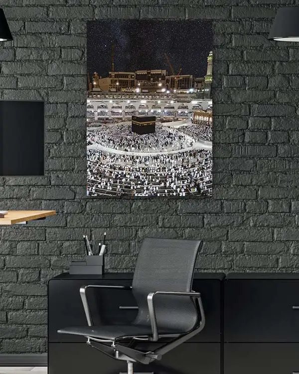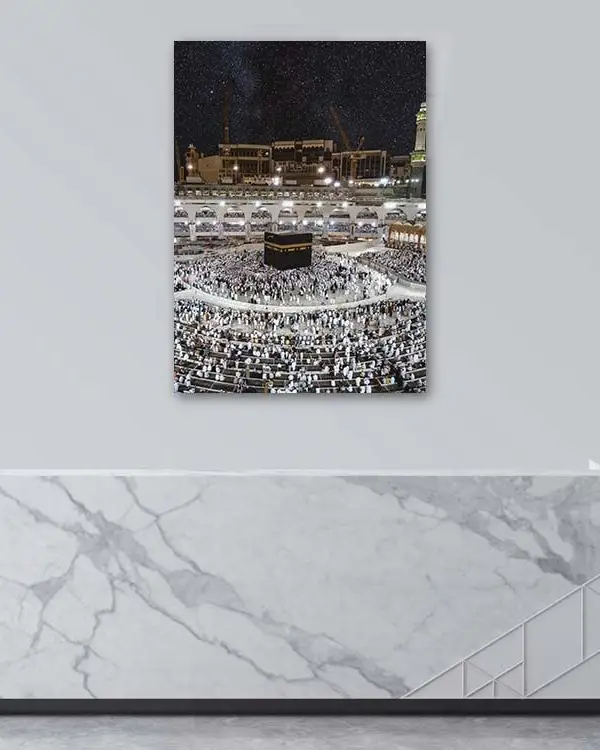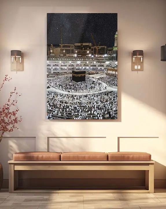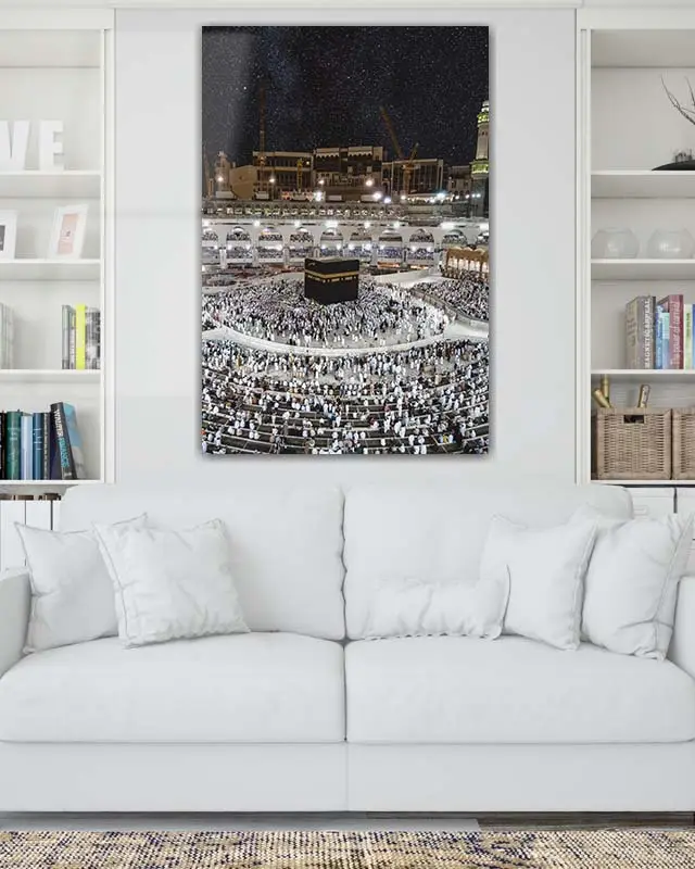 Kabe-i Şerif Gece Görünümü Kırılmaz Temperli Cam Tablo