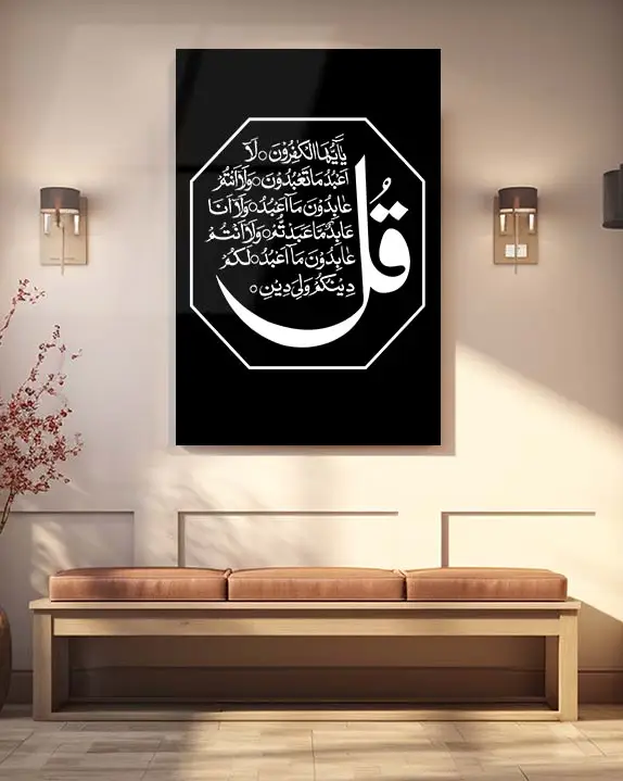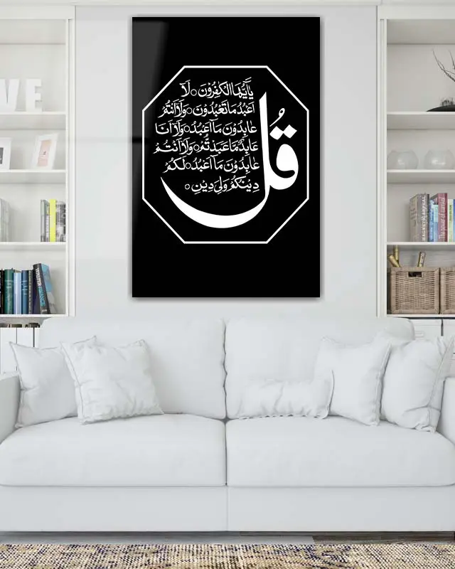 “Kafirun Suresi Yazılı Siyah Zemin Ay Motifli Kırılmaz Temperli Cam Tablo” için yorum yapan ilk kişi siz olun