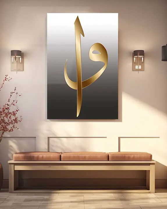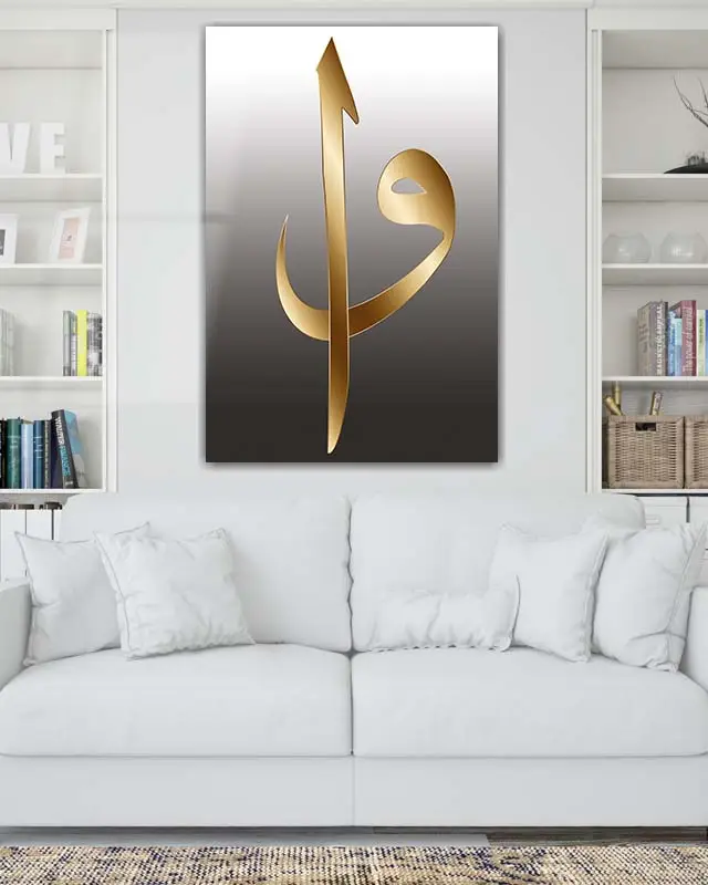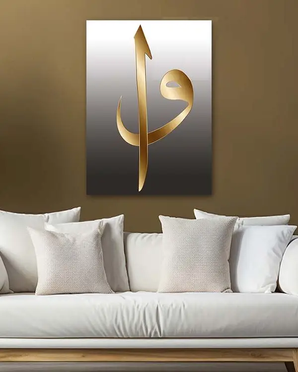 Kahverengi Zeminli Elif ve Vav Harfi Kırılmaz Temperli Cam Tablo