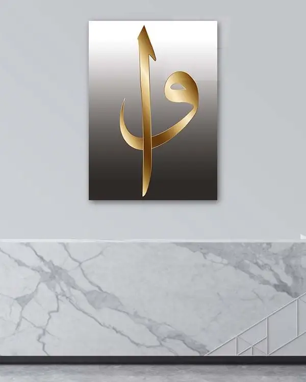 Mavi ve Kahverengi Zeminli Elif ve Vav Harfi Kırılmaz Temperli Cam Tablo