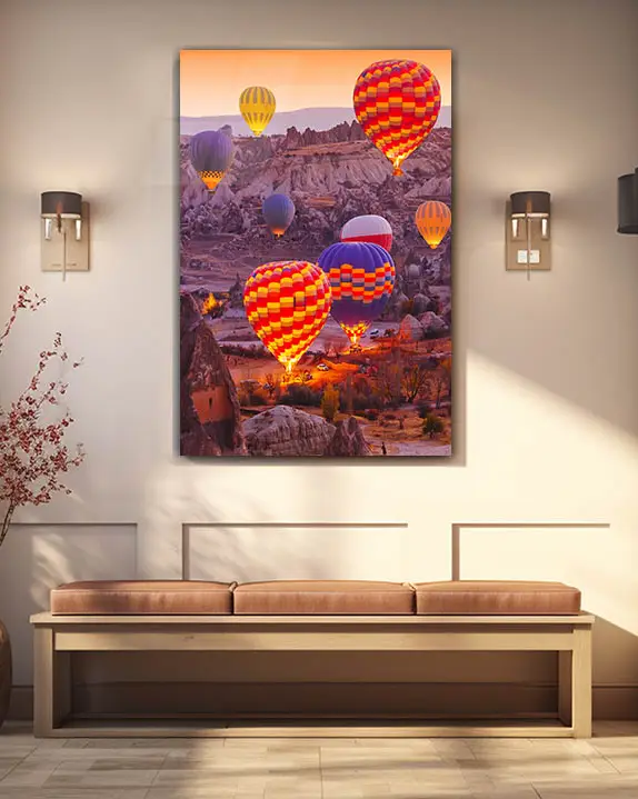 Kapadokya Sıcak Hava Balonları Temperli Cam Tablo