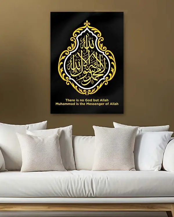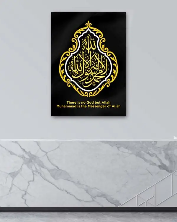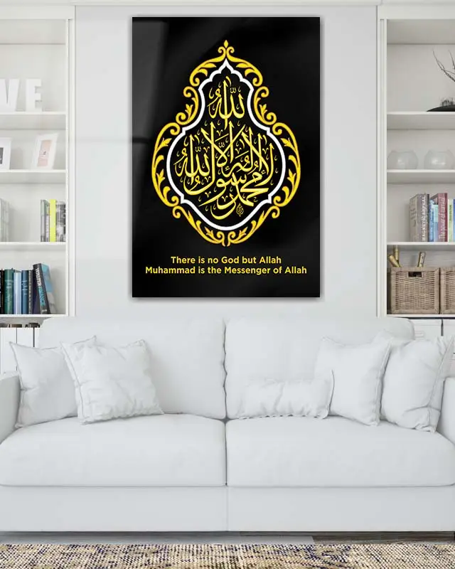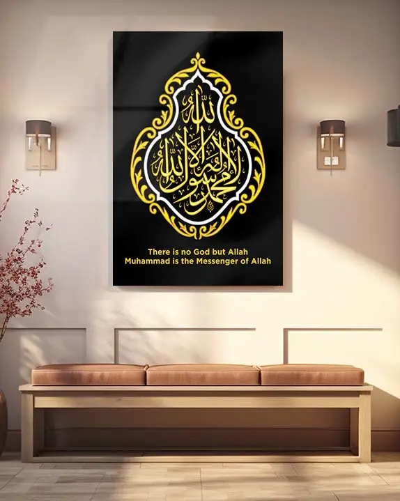 Kelime-i Tevhid Allah ve Muhammed Yazılı Hat Sanatı Kırılmaz Temperli Cam Tablo