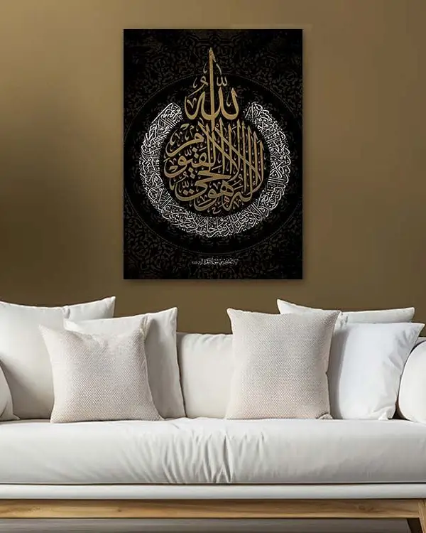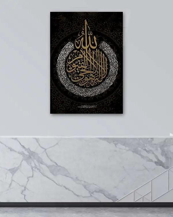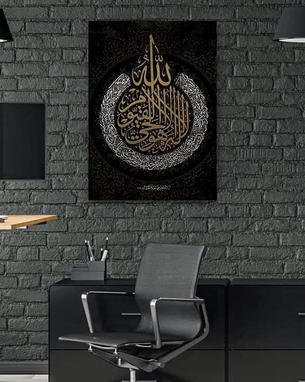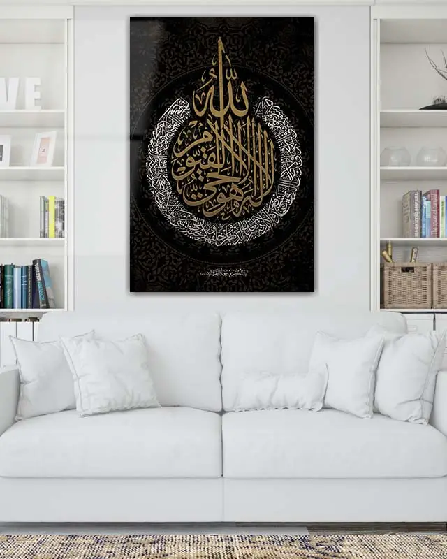 Kelime-i Tevhid ve Allah Lafzı Yazılı Siyah Zemin Kırılmaz Temperli Cam Tablo