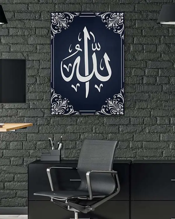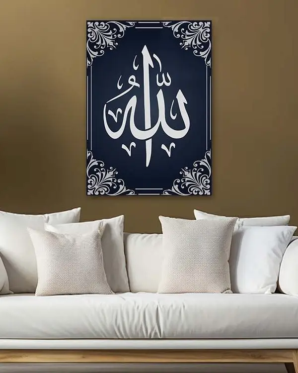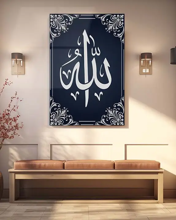 Koyu Zemin Üzerine Allah Lafzı Kırılmaz Temperli Cam Tablo