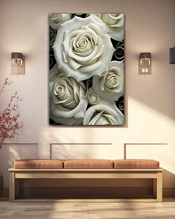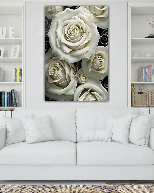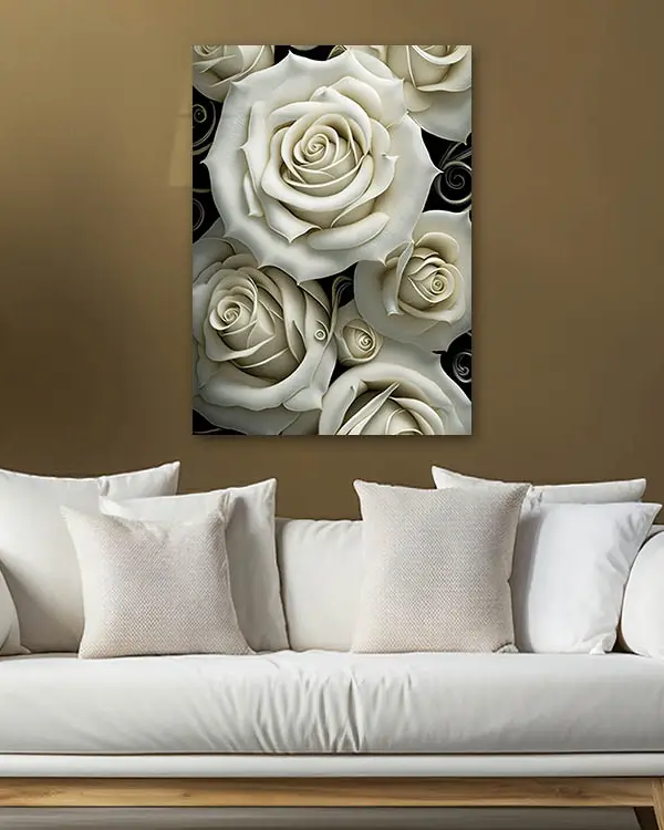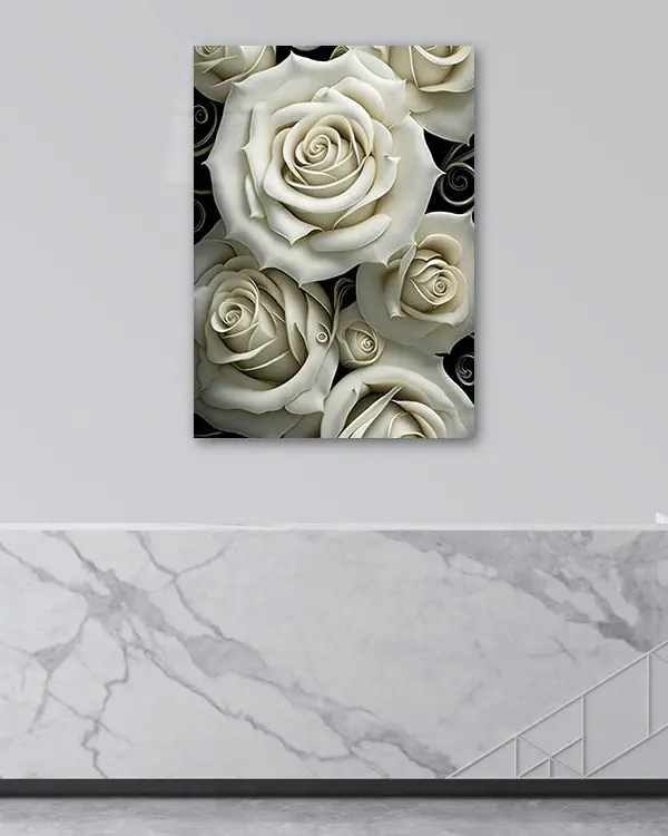 Krem Rengi Güller Temperli Cam Tablo