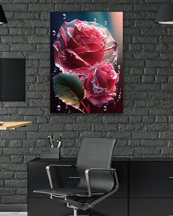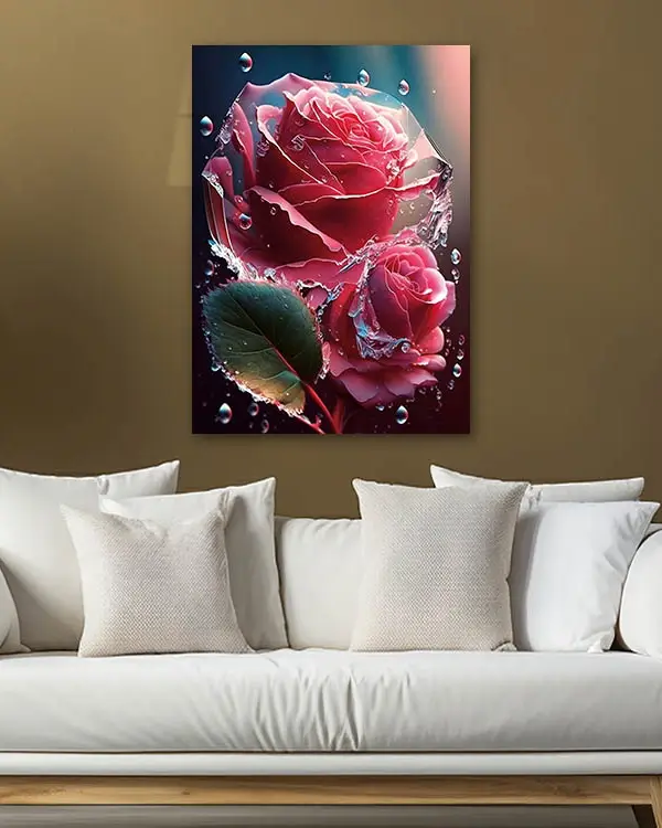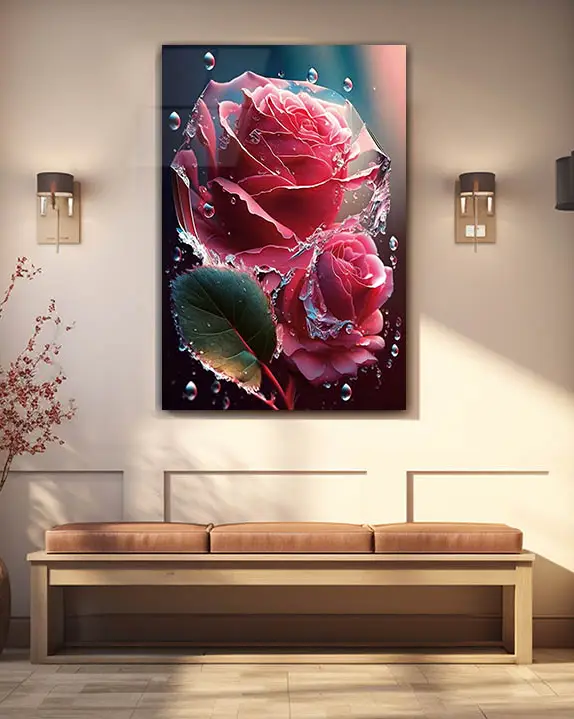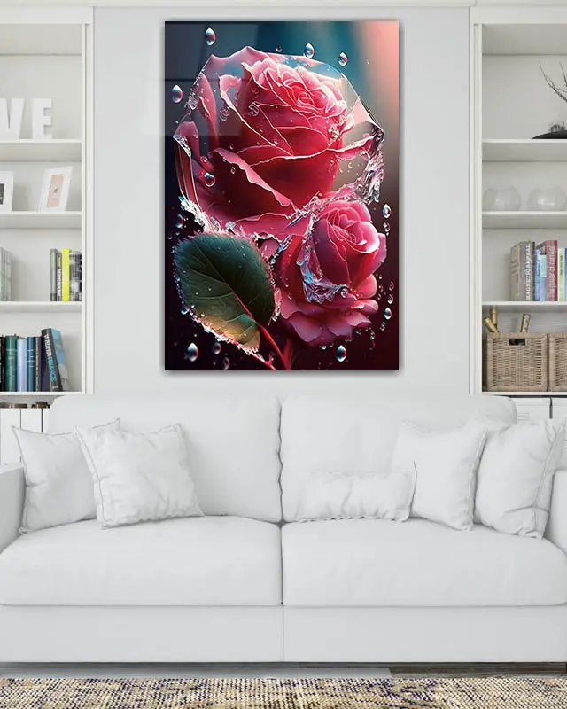 Kristal Damlacıklı Çift Gül Temperli Cam Tablo