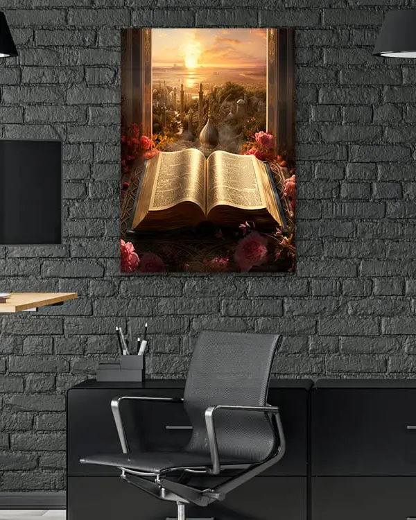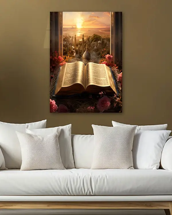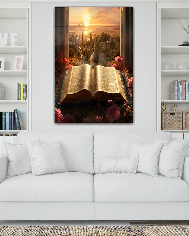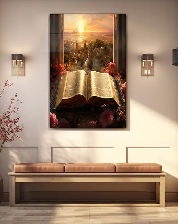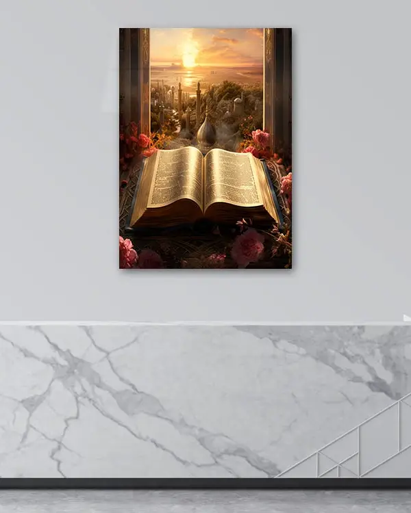 Kur’an ve Gün Batımı Manzarası Kırılmaz Temperli Cam Tablo