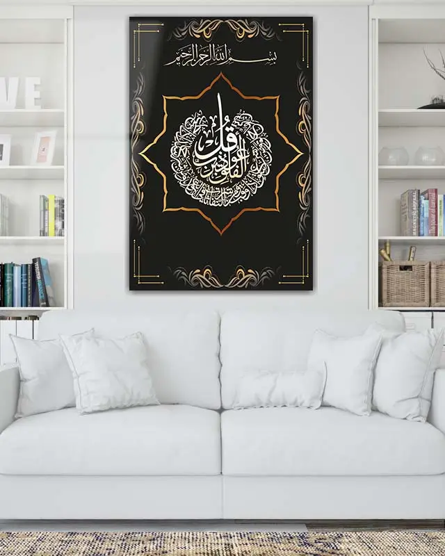 Kuvvetli Ayet Altın Renkli Kırılmaz Temperli Cam Tablo